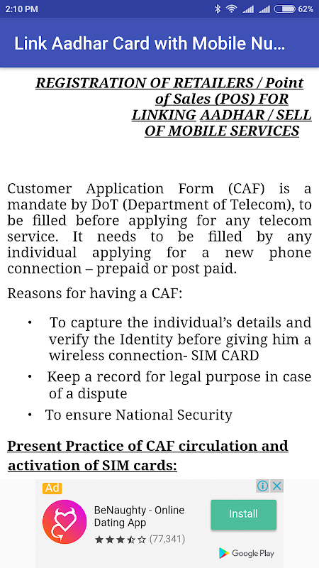 - This app will describe everything about Linking Your Adhar Card To Mobile Number &