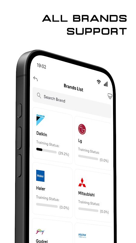 Поддержка всех основных брендов, включая Daikin, Samsung, Carrier, Whirlpool, LG, Mitsubishi, Toshiba и других.