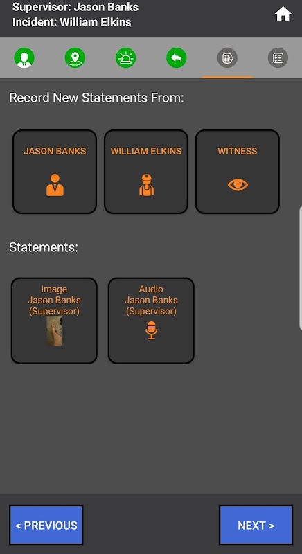 Reporter, employee and witness statements in audio, picture or text format