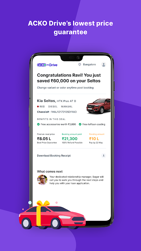 ✓ Помощь в автокредитовании: ACKO Drive также поможет вам с процедурами, связанными с автокредитованием (например, с документацией), для более быстрого одобрения кредита.