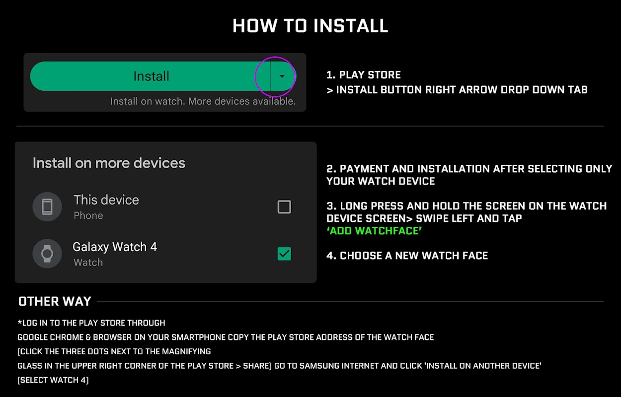 Перейдите в Интернет Samsung и нажмите «Установить на другое устройство» > выберите часы 4.
