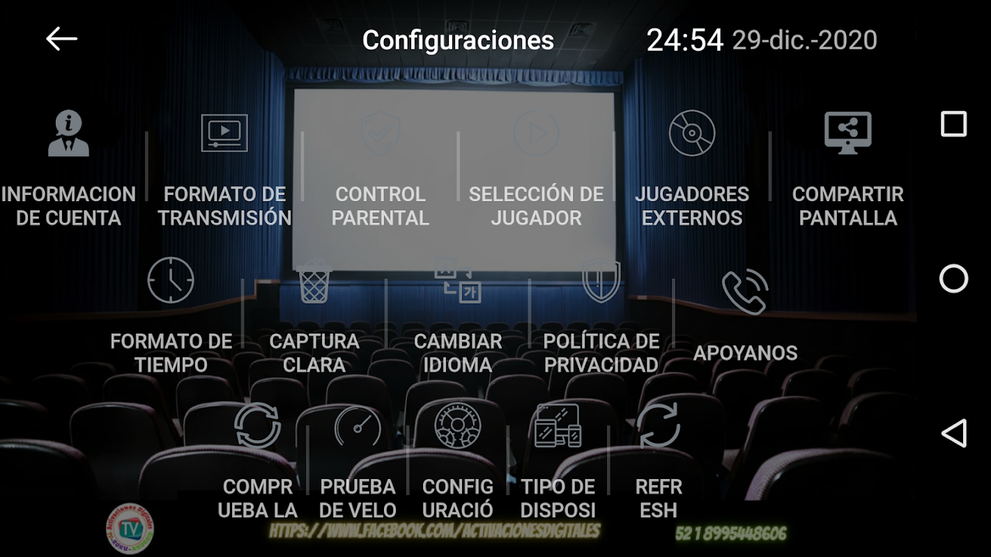 Activaciones Digitales ,viene con dos ExoPlayer Buil-in y VLC Player con Streaming HLS adaptativo. No se requieren aplicaciones o jugadores de terceros. Diseño de interfaz de usuario simple para una fácil navegación.