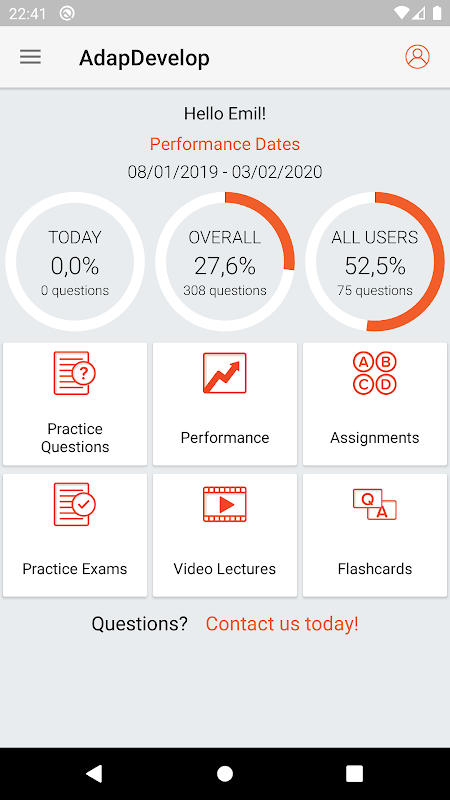 Готовьтесь к MBE на ходу с приложением AdaptiBar, разработанным для устройств Android. Прогресс, который вы делаете в приложении, отслеживается и автоматически синхронизируется с основной программой. Пока у вас есть активный сеанс программы, вы сможете:
