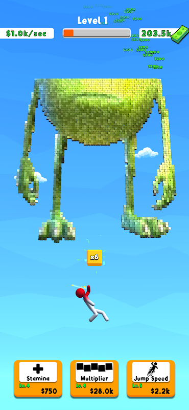 Заполните сцену своим персонажем, бьющим головой по пиксельным блокам, и найдите картинку, ожидающую вас!