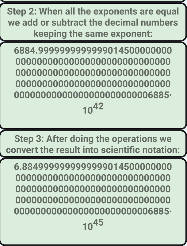 Когда пользователь вводит числа, приложение будет выполнять операции. Чтобы складывать или вычитать числа в экспоненте, все числа должны иметь одинаковую степень. Поэтому мы меняем числа, чтобы