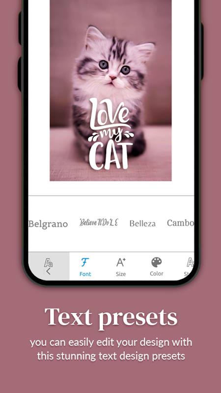 ✔️ Выберите размер текста, цвет, непрозрачность, стиль и выровняйте текст с фотографией, используя приложение для добавления текста в фотографии.