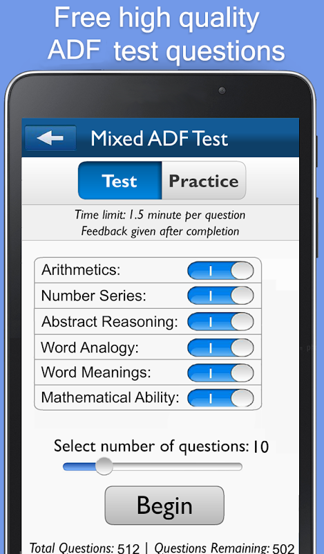 Practice up to 500+ questions divided into the 6 test categories of the ADF aptitude test.