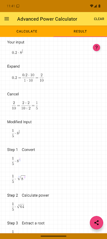 Выбирайте из 5 режимов вычислений для степеней, корней и обратных значений. Включены все правила степеней для понимания законов. Поддерживаются отрицательные числа, десятичные дроби и дроби.