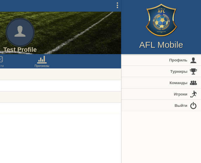 Приложение Amateur Football League - российской любительской футбольной лиги. Приложение открывает доступ к статистике турниров, команд и игроков; капитанам доступны функции по формированию составов и заявки на игру, пожеланий по времени матча.