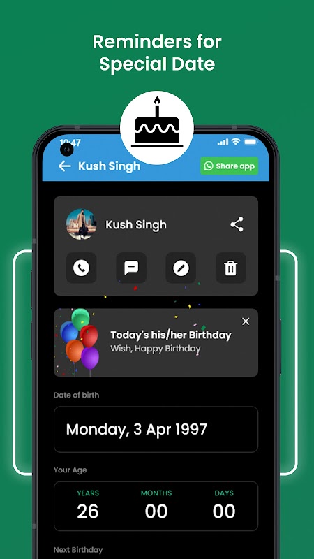 Aging App: Birthday Calendar by DOB. Age finder in days, months & years