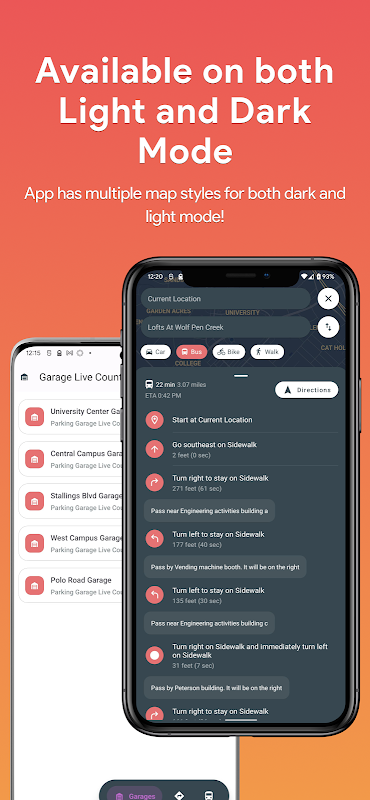 Aggie MapS is a student-made application to help those on campus find their way around. We combine bus routes, directions, and parking garage live counts to give users their best chance at finding their classes or places that they need to go.