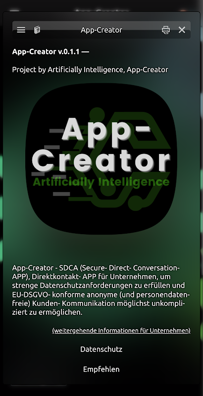 Наше приложение SDCA (Secure Direct Conversation App) обеспечивает прямое общение и отвечает строгим требованиям к защите данных, а также обеспечивает анонимное (и не требующее предоставления личных данных) общение с клиентами в соответствии с EU-DSGVO.