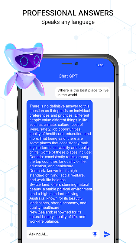Спросите приложение AI Advanced GPT Open Chatbot о чем угодно и получите мгновенные ответы.