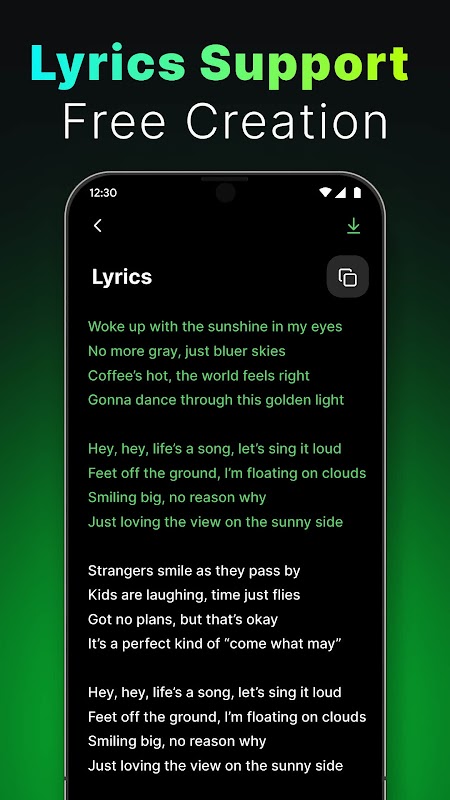 - Поддержка нескольких языков: создавайте тексты и музыку на предпочитаемом вами языке интерфейса.