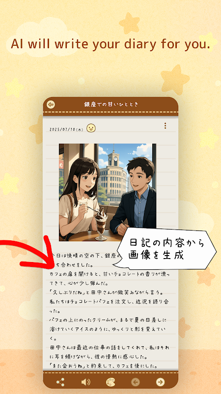 ИИ автоматически сгенерирует изображение, соответствующее вашей записи в дневнике.