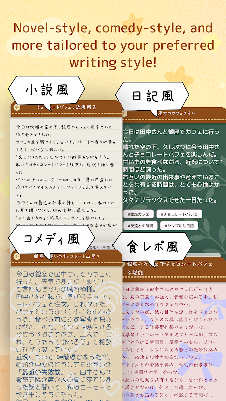 Поскольку ИИ завершает ваши ежедневные записи в дневнике, как профессиональный писатель, вы можете естественным образом освоить навык написания красивых предложений.