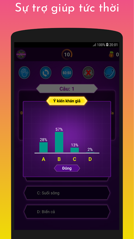 • Trợ giúp từ khán giả : Khán giả đưa ra câu trả lời của mình (thống kê biểu đồ) Giúp bạn dễ dàng đưa ra câu trả lời của mình