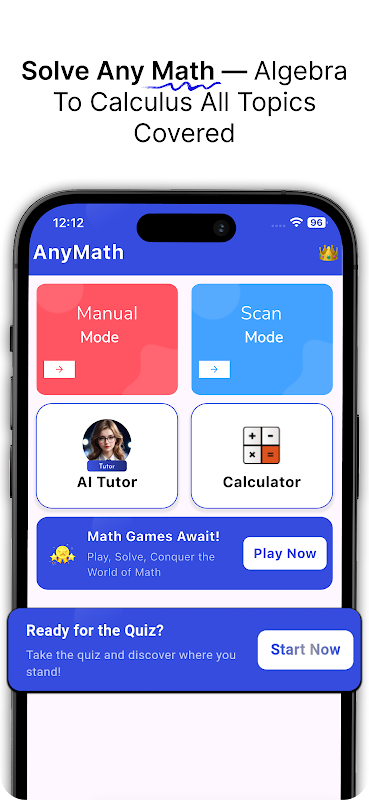 Решайте математические задачи как никогда раньше с AnyMath AI Math Solver, лучшим приложением для изучения математики для студентов, преподавателей и энтузиастов всех уровней! Независимо от того, решаете ли вы базовую арифметику или разбираетесь с продвинутыми исчислениями, это приложение создано, чтобы сделать математику простой, увлекательной и доступной для всех.
