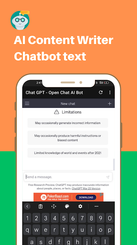 Если вы ищете умного помощника с искусственным интеллектом, который может помочь вам во всем, попробуйте наш Chat GPT — Open AI ChatBot. Это идеальное приложение с искусственным интеллектом для тех, кто хочет вести увлекательные беседы или улучшить свои навыки письма. Не верьте нам на слово, попробуйте приложение Chat GPT — Open AI ChatBot сегодня и улучшите свои навыки письма с помощью персонального помощника с искусственным интеллектом, который всегда будет у вас под рукой.