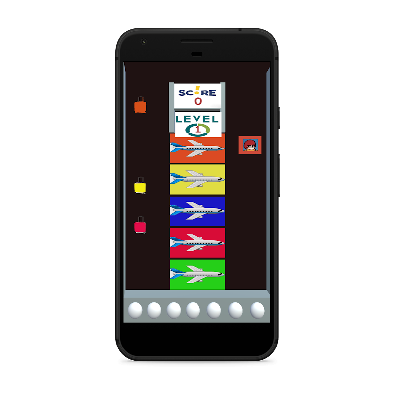 a funny game loading colorful passengers and baggages to same coloured planes and pass the faster levels and get high score.