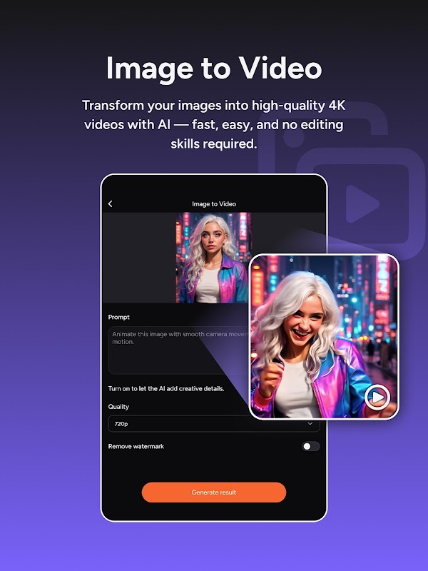 - Image to Video: Анимируйте фотографии в видео с музыкой и эффектами