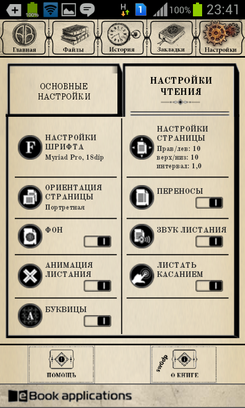 * Полнофункциональный файловый менеджер, Поиск, История Чтения и Закладки обеспечивают легкую навигацию между книгами.