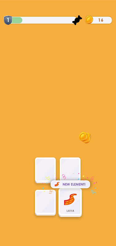 Создавайте комбинации, перетаскивая одну карту элемента над другой, чтобы заработать монеты и разблокировать новый элемент. Покупайте новые случайные элементы для своей доски за эти монеты.