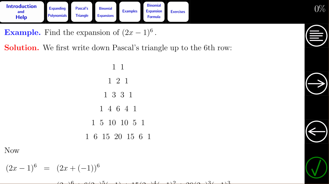 * Studying mathematics is best done by working through examples and exercises. There are many interactive examples and exercises in this tutorial that must be completed to achieve 100% progress.