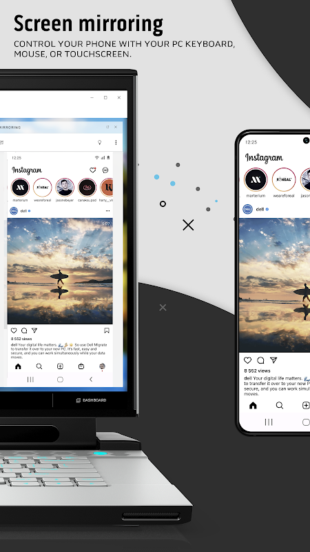 • Дублирование экрана — управляйте телефоном с помощью клавиатуры, мыши или сенсорного экрана вашего ПК.