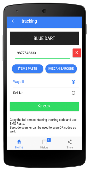 • SMS Paste feature allows to paste sms directly. The tracking code is extracted automatically.