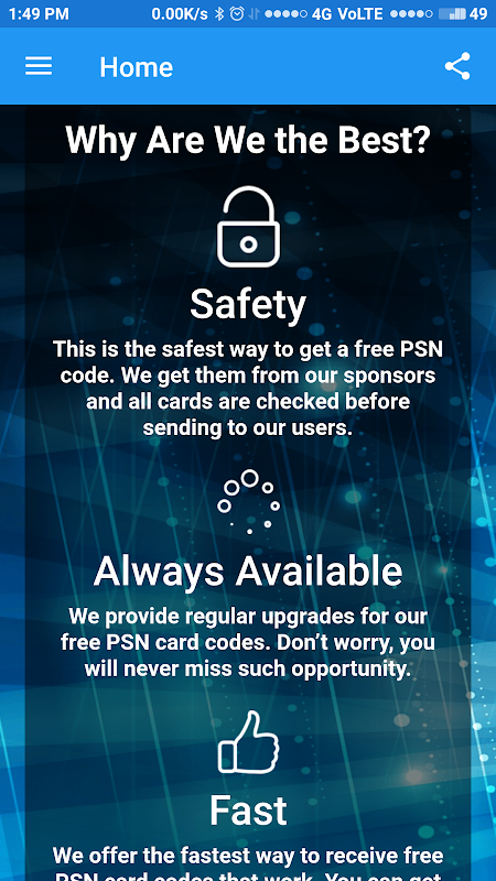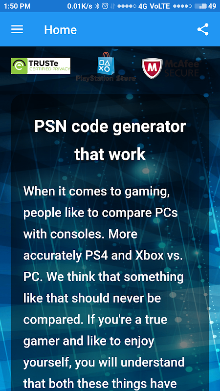 Every day we give our users a limited amount of PSN free codes, which our sponsors provide us with. If you want to Read More receive a free PSN code, all that is required of you is to go through an easy procedure where you claim your right to receive free PSN codes. We have only a few PlayStation Plus cards and a lot of common PlayStation cards. So, your chances to get the best card are rather low, but it doesn’t mean that you should give up. We allow you to use this offer many times per day. Hence, if you didn’t win this time, try our PlayStation code generator again and you will probably be get next time!