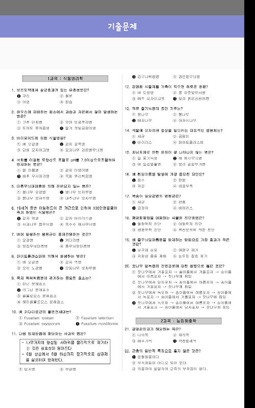 식물보호기사 기출문제를 다루고 있으며, 정답을 함께 표현하여 공부하는 시간을 절약 할 수 있습니다.