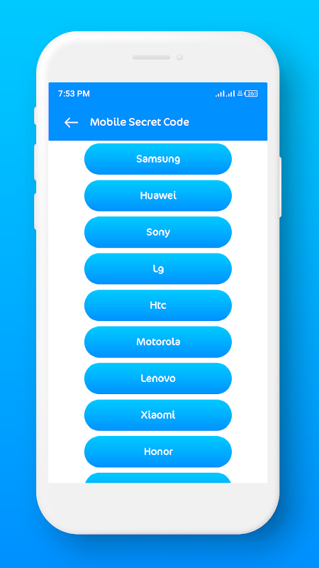 All Mobile Secret Codes app include the android secret code of all mobile device like Samsung, Huawei, Sony, LG, HTC, Motorola, xiaomi, honor, oppo, realme, one plus, vivo, blackberry, asus, zte, infinix, techno, acer and meizu. In this app, there are various hidden codes given which can be employed on the Android devices.