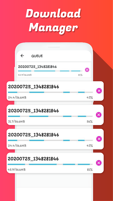 -Video Saver & Status Saver has a download manager with which videos can be paused, resumed and deleted while downloading.