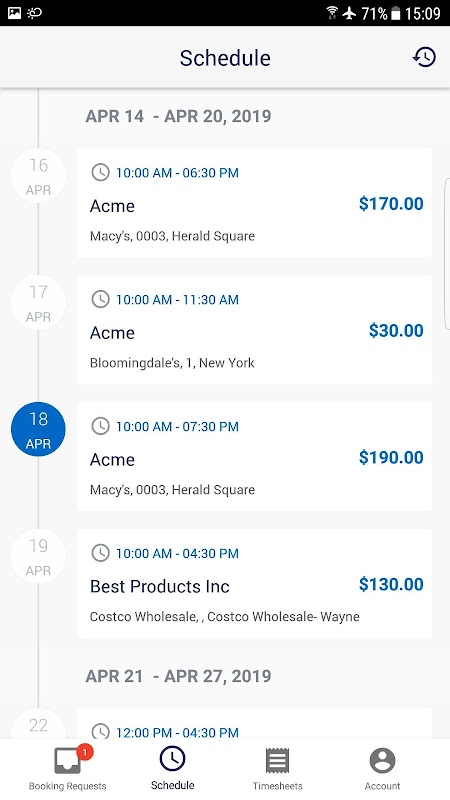 ● Смотрите все детали о каждой смене, в том числе местоположение, ожидаемая оплата и заметки от ваших менеджеров