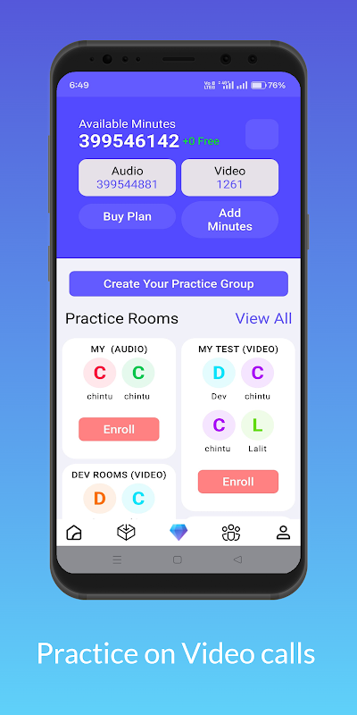 ✅ Практика аудио и видеозвонков — аудио и видеозвонки в режиме реального времени с помощью практики разговорной речи на английском языке.