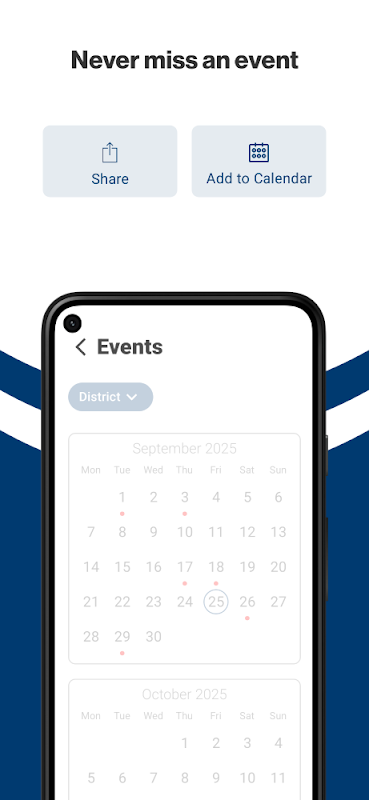 В разделе событий отображается список событий по всему округу. Пользователи могут добавить событие в свой календарь, чтобы поделиться им с друзьями и семьей одним нажатием.