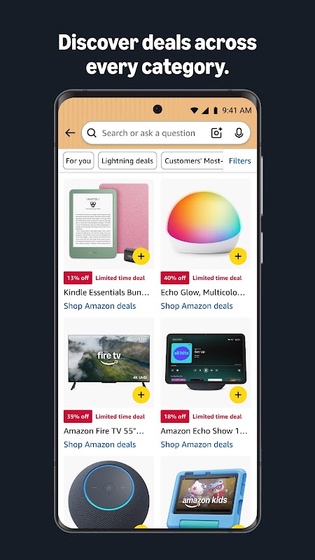 Разработчик — Amazon Mobile LLC. Ключевое преимущество — удобное отслеживание заказов с уведомлениями в реальном времени. Интерфейс продуман для быстрого выбора товара и оформления покупки, а при необходимости помогает поддержка 24/7. При желании можно установить Amazon Shopping APK и перейти к функциям ниже.