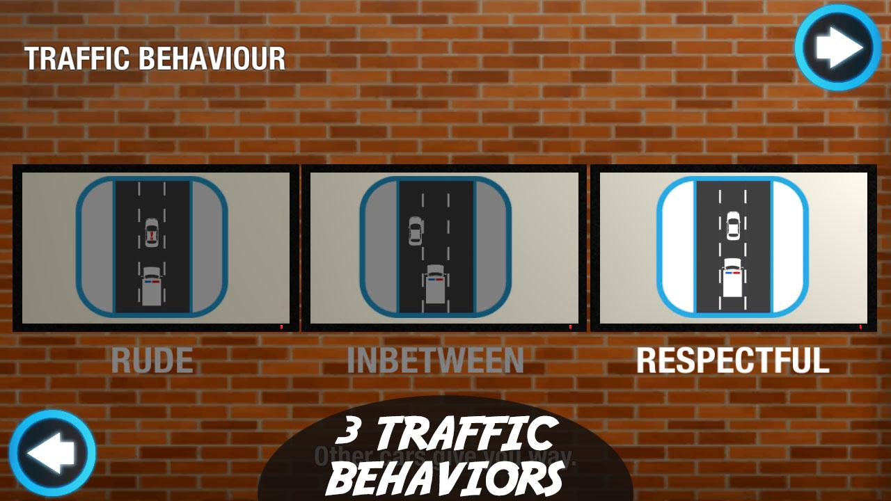 We have designed 3 different driver behaviors for you, namely, RUDE, INBETWEEN, RESPECTFUL. You can select what kind of drivers you want to tackle around you while driving the patient to the hospital.