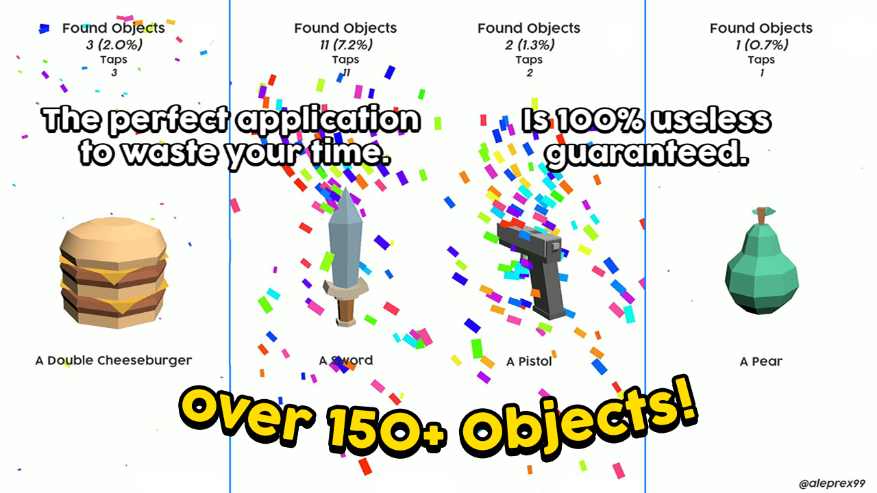 Идеальное приложение, чтобы тратить свое время. 100% бесполезное приложение, гарантировано. Нажмите на экран или встряхните устройство, и вам будет показан объект.