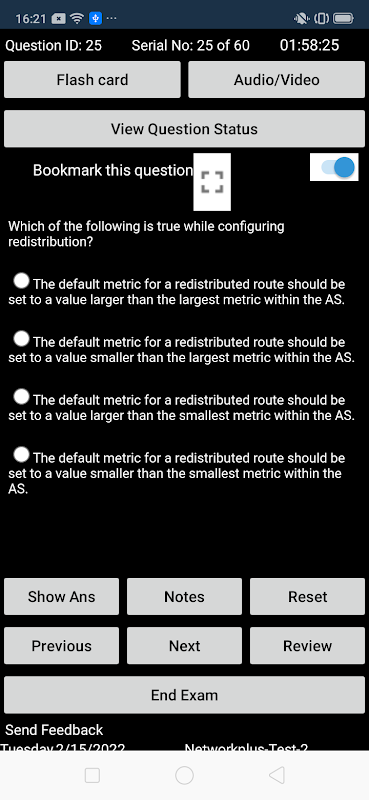 Экзаменационный модуль. Он отвечает за проведение оценочных тестов для кандидатов, выбранных автором. Вопросы могут состоять из простого текста/html, pdf, основанного на выставках или мультимедиа. Предусмотрено несколько параметров конфигурации экзамена, таких как отключение некоторых кнопок навигации (например, вы не хотите, чтобы кандидат возвращался или оставлял отзыв). Как видно на картинке выше, предусмотрено несколько функций, таких как изменение размера текста, полноэкранный просмотр, ночной вид, создание закладок и т. д.