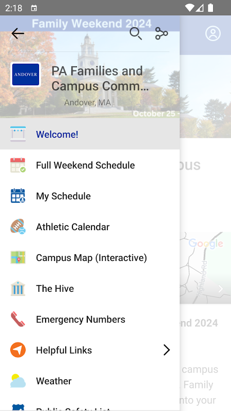 Andover Event Guides обеспечивает легкий мобильный доступ к расписанию мероприятий кампуса Phillips Academy, информации о местонахождении и месте проведения, а также к уведомлениям в реальном времени.