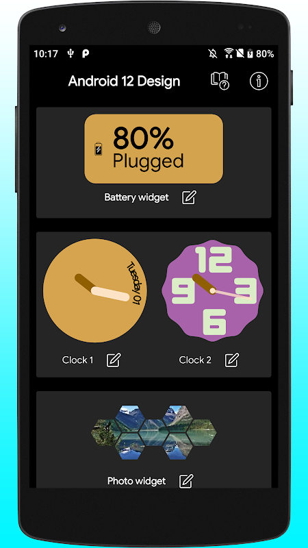 A simple, but highly customizable widget with the marterial design UI. It gives a good overview of widget at hand on your Home screen.