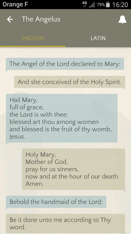 Для того, чтобы помочь вам создать привычку молиться Angelus ежедневно, вам будет предоставлена возможность установить напоминания на несколько часов, наиболее удобным для вашего графика (по умолчанию в 8 утра, 12 вечера и 8 вечера).