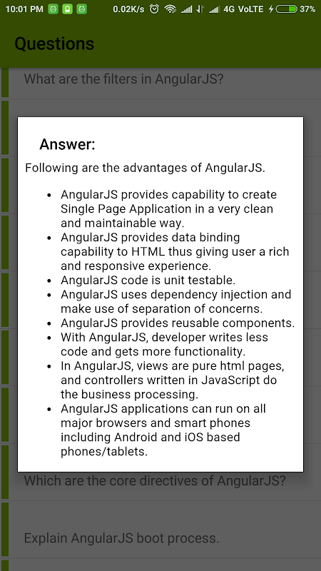 Удобный приложение с сотнями вопросов для интервью в AngularJS.