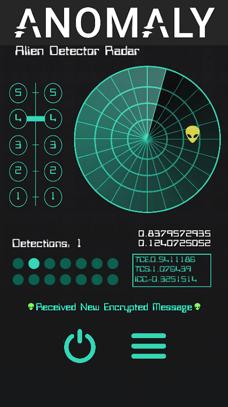 Anomaly - Alien Detector Radar is an application designed to provide the user a way to scan the area and locate unusual and unidentified aircraft ( UFO ). Detection is not immediate because it relies on Frequencies.