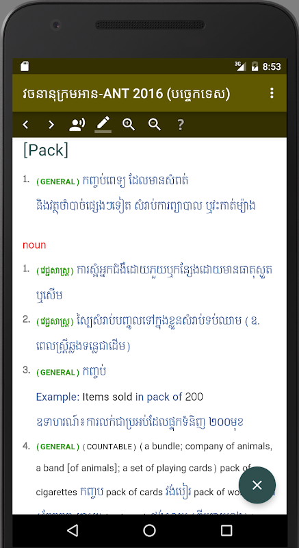 - Включены 3 Технические словари: английский на английский, с английского на кхмерском и кхмерском на английский