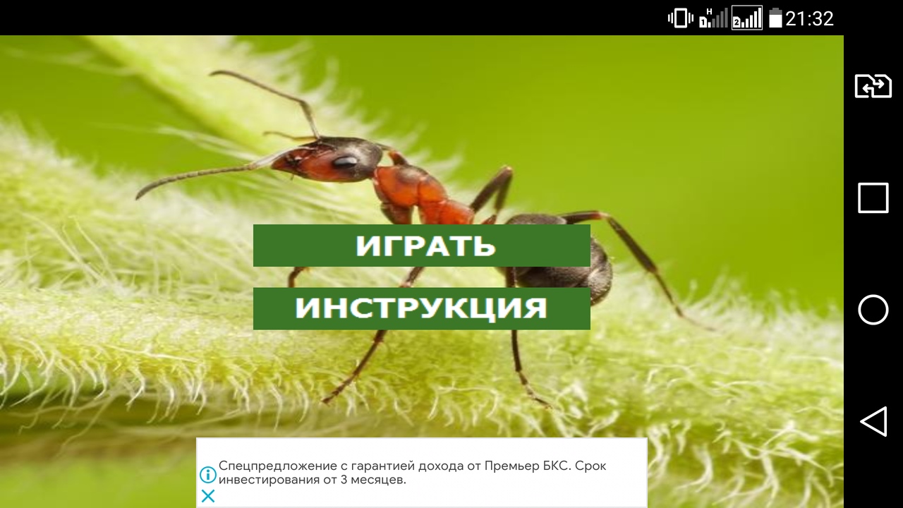 Хотел бы себе муравьёв? Конечно же да. Новая игра AntLive как раз для тебя, ведь в этой игре существуют настоящие муравьи! Развивай свою колонию, атакуй врагов, которые нападают на твою колонию! Корми матку, чтобы выводить новых мурашей! Дои тлю, чтобы пополнить запасы вкусного сиропа. Атакуй вражескую колонию!