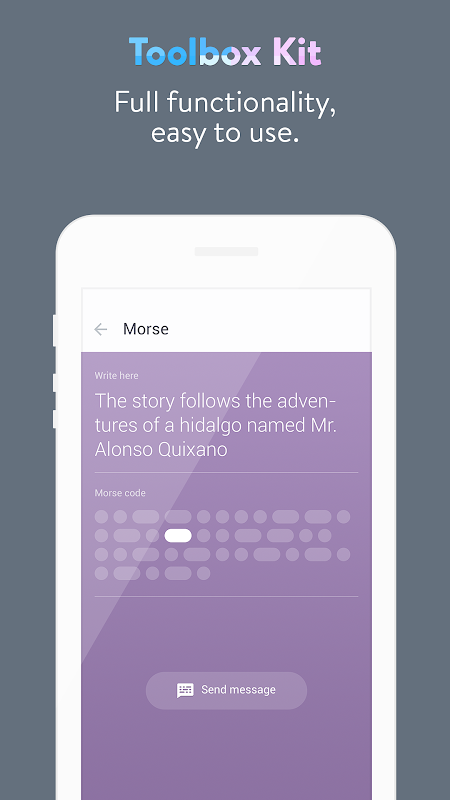 Morse: Code and send your messages with this morse coder. You will send the messages with the flashlight blinking.