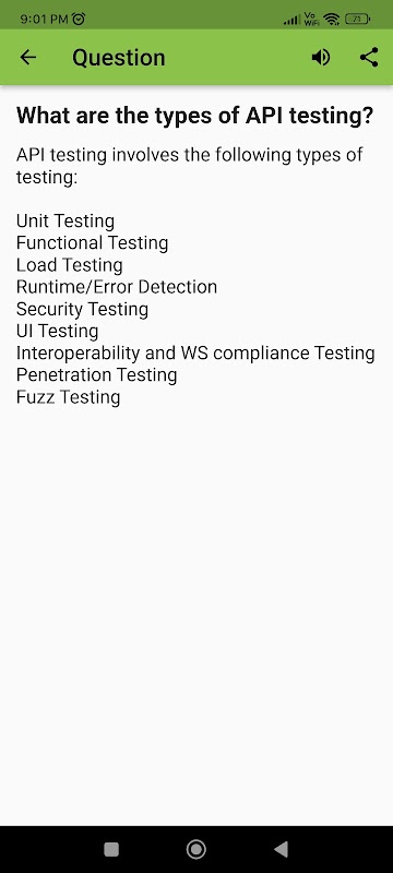 Вопросы для собеседования по тестированию API. Для тех, кто особенно заинтересован в тестировании API, в нашем приложении есть специальный раздел с более чем 100 вопросами, посвященными концепциям тестирования API. Углубите свои знания и повысьте уверенность в сценариях интервью по тестированию API.